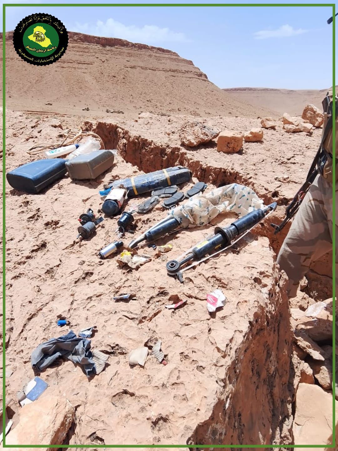 بناءً على معلومات استخبارية دقيقة لشعبة استخبارات الفرقة الخامسة التابعة إلى مديرية الإستخبارات العسكرية وبالتعاون مع القوات الأمنية الماسكة للأرض، وبعد البحث والتفتيش تم ضبط عدد من مضافات وأوكار وكهوف تابعة لعصابات داعش المنهزمة في صحراء الأنبار بمنطقة الكعرة، حيث تم العثور على ورشة تصليح ومواد احتياطية للعجلات و عدة حفر ومواد غذائية وتجهيزات أخرى ومواد متنوعة، وقد تكفلت مفارز الجهد الهندسي برفع المواد وتدميرها موقعياً وطمر المضافات بالكامل.