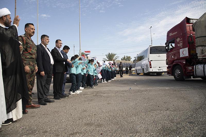 وتنطلق المساعدات الإغاثية للعتبة العباسية من مدينة كربلاء باتجاه سوريا على المعبر البري الرابط مع العراق.