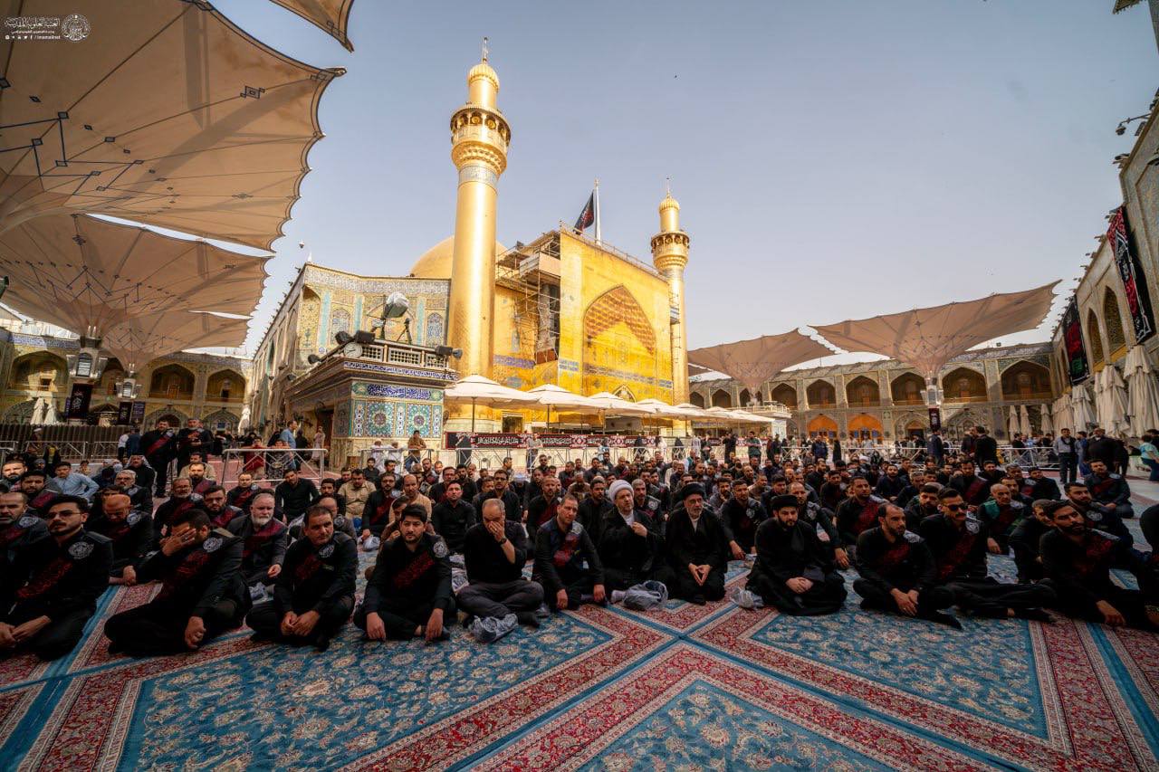 وأقام المعزون مجالس العزاء في ضريح الإمام علي ( ع ) وسط أجواء خيم عليها الحزن والأسى والبكاء لفقد مدرسة العلم والمعرفة والتقوى.