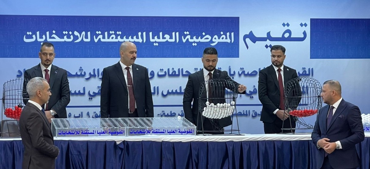أعلنت المفوضية العليا المستقلة للانتخابات، يوم السبت، نتائج القرعة الخاصة بمنح الأرقام الانتخابية للتحالفات والأحزاب المشاركة في الانتخابات البرلمانية المقرر عقدها بتاريخ (11 تشرين الثاني القادم).