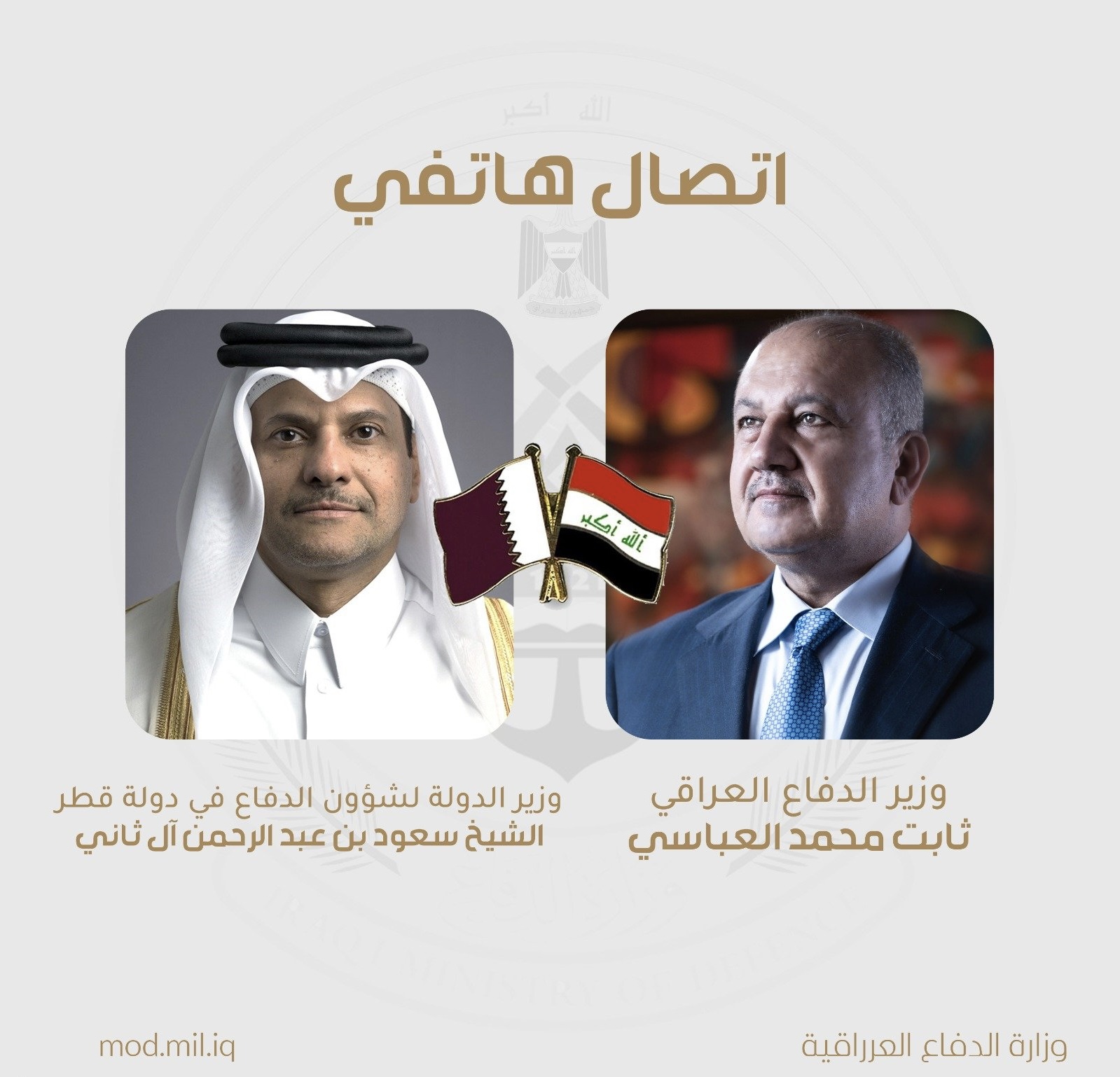 أعلن وزير الدفاع ثابت محمد العباسي، اليوم الأربعاء، خلال اتصال هاتفي لنظيره القطري سعود بن عبد الرحمن آل ثاني، تضامن العراق مع قطر في مواجهة التحديات.