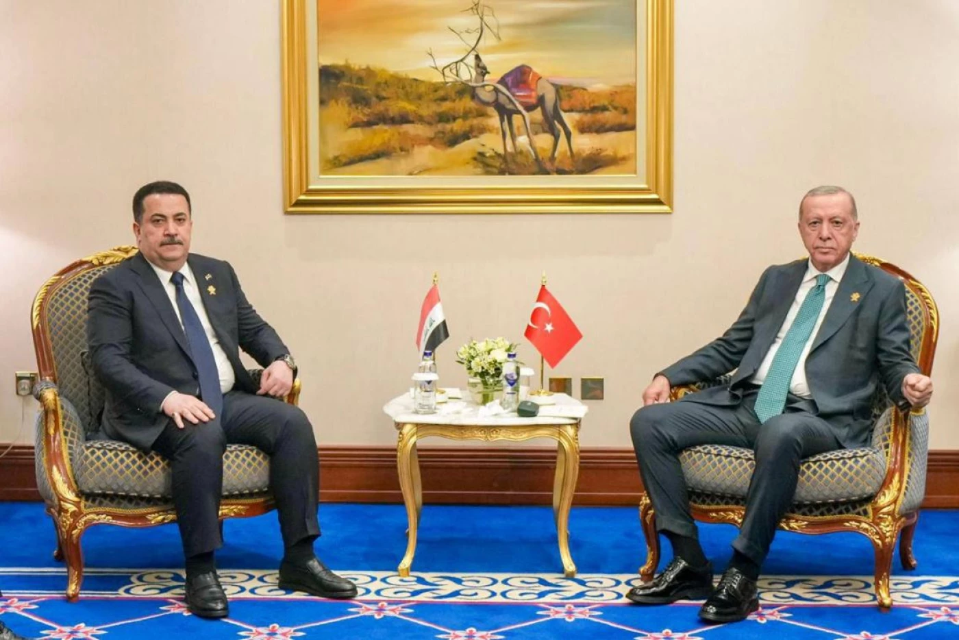 وبحسب البيان، تطرق اللقاء إلى آفاق العلاقات الثنائية بين البلدين وأهمية تطويرها في مختلف المجالات، حيث عبّر السوداني عن شكره للرئيس التركي على تعاونه فيما يخص أزمة المياه التي يمر بها العراق والمنطقة.