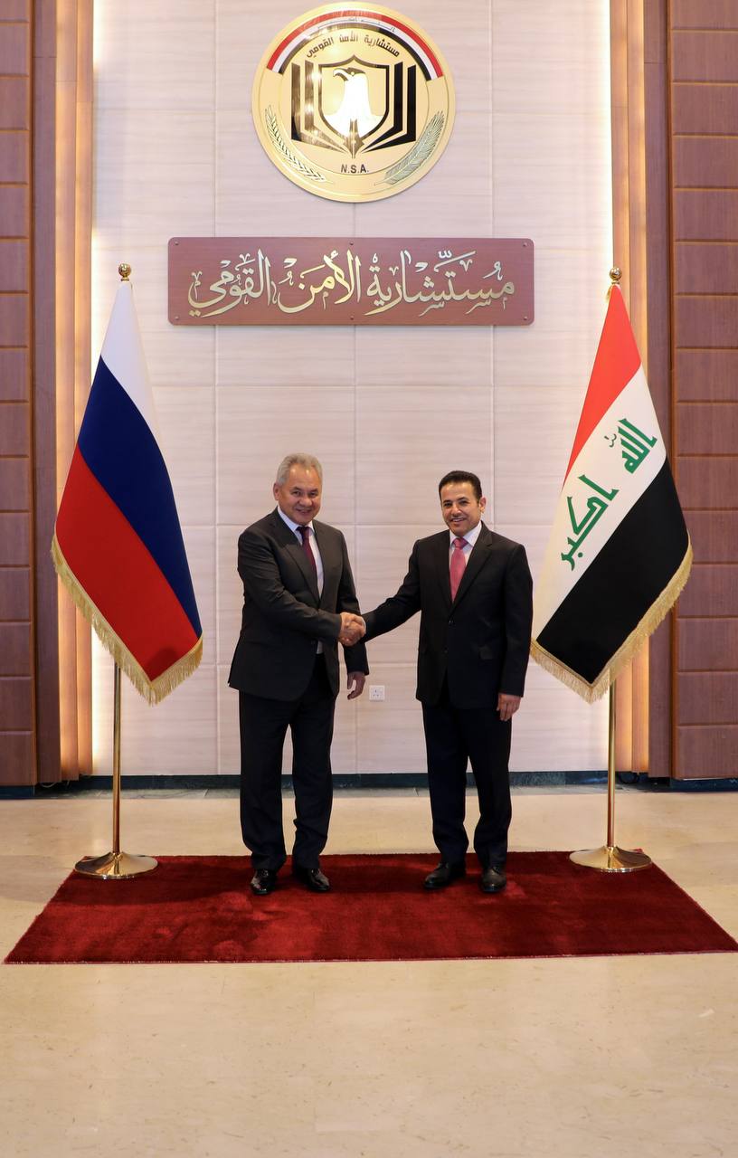 بحث مستشار الأمن القومي، قاسم الأعرجي ، اليوم الثلاثاء، مع أمين مجلس الأمن القومي الروسي، السيد سيرغي شويغو، تبادل الخبرات والمعلومات ونقل التكنولوجيا والتدريب في مجال أمن الحدود والأمن السيبراني.