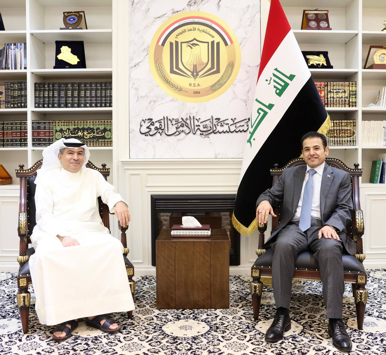 وبحسب بيان المكتب الإعلامي لمستشار الأمن القومي الذي تلقاه كلمة الإخباري، فأن "ذلك جاء خلال استقبال مستشار الأمن القومي، قاسم الأعرجي، بمكتبه ، السفير الكويتي في بغداد حسن محمد الزمان".